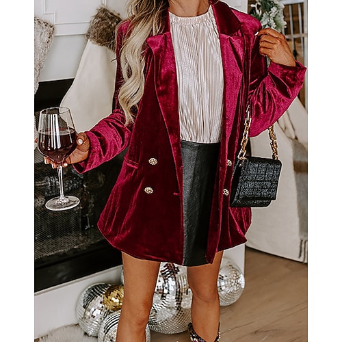 Damen Blazer Samtblazer Bequem Tasche Knöpfe Mode Einfach Party Geburtstag Party / Abend Regulär Umlegekragen Normale Passform Langarm Oberbekleidung Schwarz Wein Dunkelgrün Herbst Winter