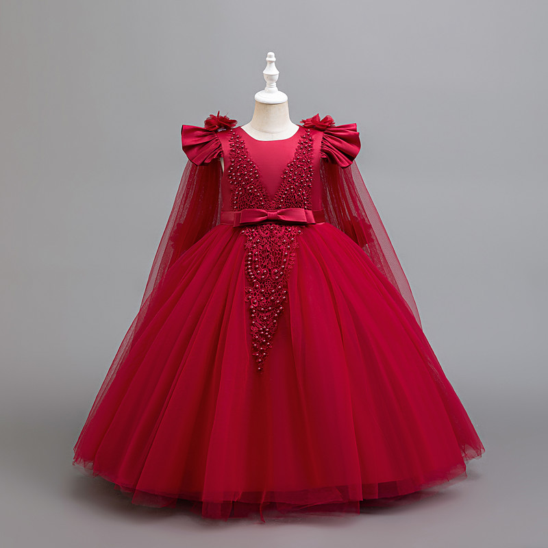 Kids Girls' Party Dress Solid Color Long Sleeve Special Occasion Princess Polyester Party Dress Summer Spring 4-13 Years White Champagne Pink