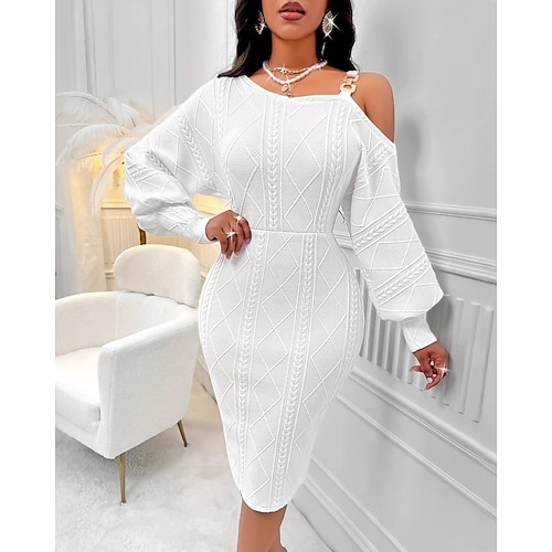 Per donna Abito Lungo Maxi Abito Abito Bianco Vestito Casual Tubino Elegante Moda Moderno Quotidiano Vacanza Uscire Vestibilità regolare Semplice Manica Lunga Top con spalle scoperte Bianco Primavera
