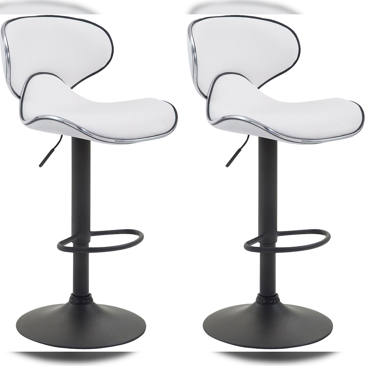 DELUKE 2er Set Barhocker FAMIR - Kunstleder Weiß 46x49x88 cm Schwarz | Barstuhl Mit Lehne Tresenhocker Tresenstuhl Kneipenhocker Kneipenstuhl