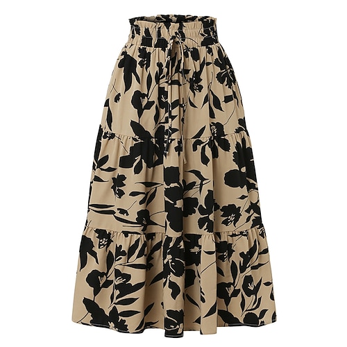 Per donna Gonna Elegante Moda Casual Midi Vita Alta Gonne Floreale Coulisse Stampato Micro-elastico Quotidiano Streetwear blu navy Rosso bordeaux Nero Verde Estate Spandex Poliestere