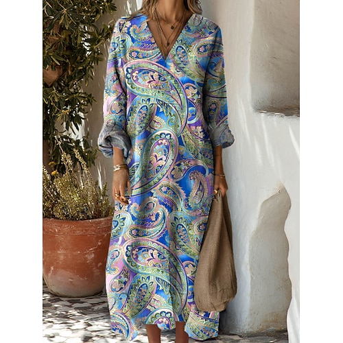 Per donna Abito maxi Vestito Estivo Abito a trapezio Vacanza Casual Boho Feste Ferie Spiaggia Vestibilità regolare Floreale Grafico Geometrico Manica Lunga Scollo a V Nero Rosa Rosso Blu Estate