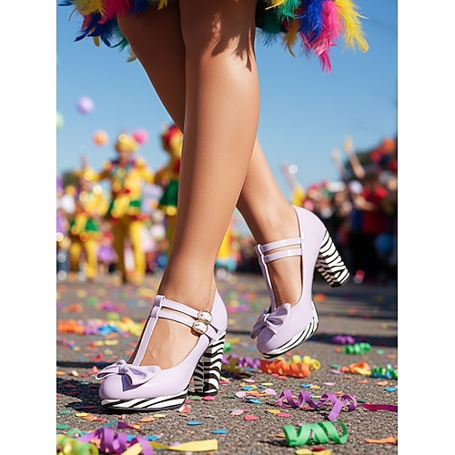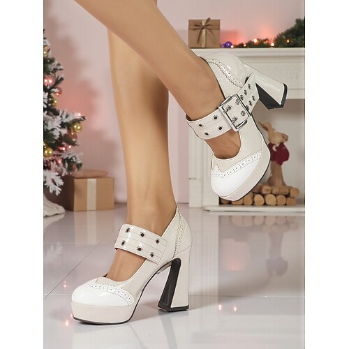 Per donna Quotidiano Carnevale Feste Fiocco Fibbia Tacco grosso Punta Tonda Elegante Vintage Finta Pelle Fibbia Nero Bianco Giallo