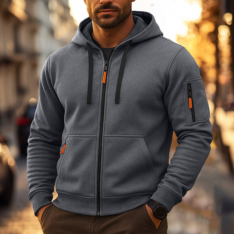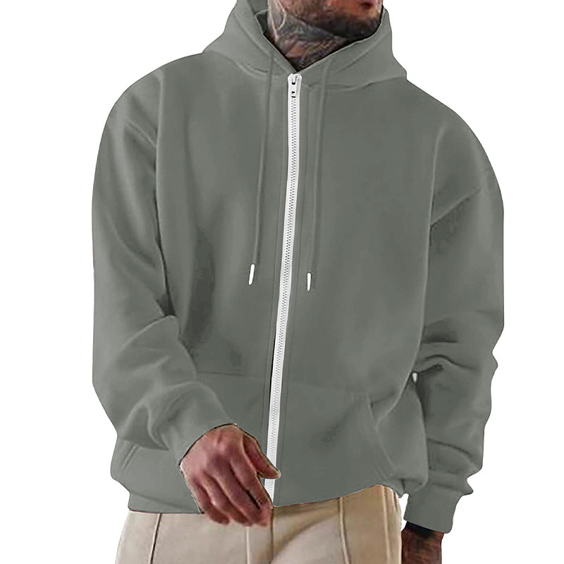 Men's Hoodie Black Khaki Light Grey Dark Gray Hooded Plain Zipper Color Block Sports Outdoor Casual Daily Cool Casual Athletic Fall Spring Fall Clothing Apparel Hoodies Sweatshirts
