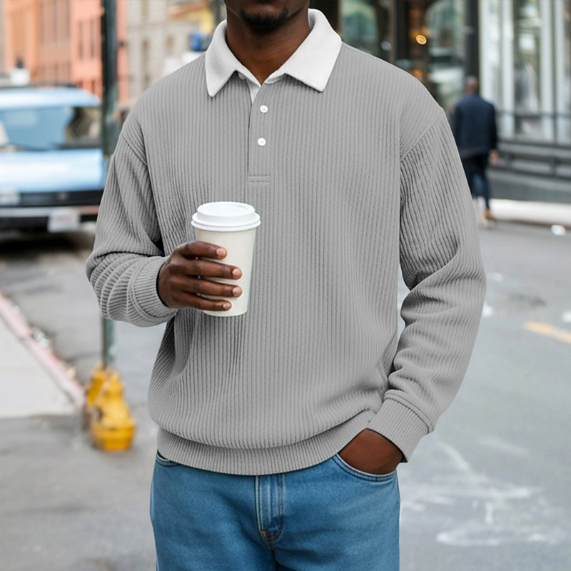 Men's Corduroy Shirt Polo Shirts Casual Sports Lapel Long Sleeve Fashion Basic Color Block Buttons Warm Fall Regular Fit Black Light Blue Red Green Dark Blue Gray Corduroy Shirt