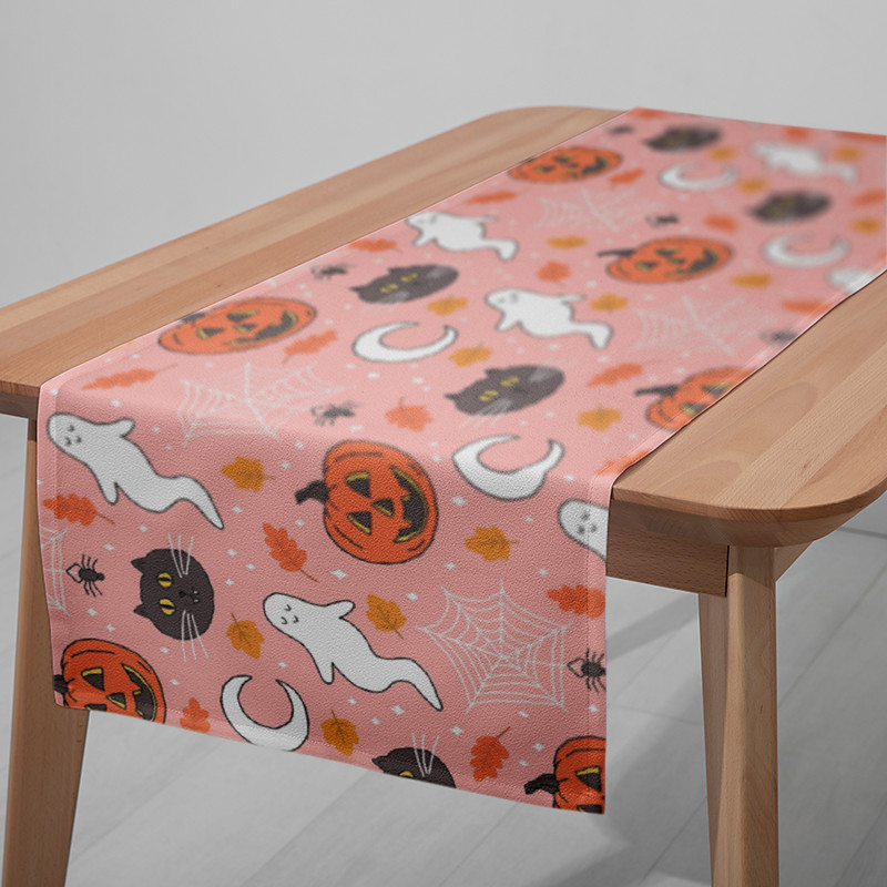 Halloween Table Runner and Rectangular Tablecloth, Printed Fabric Table Cover for Dining Room, Party, or Holiday Decoration