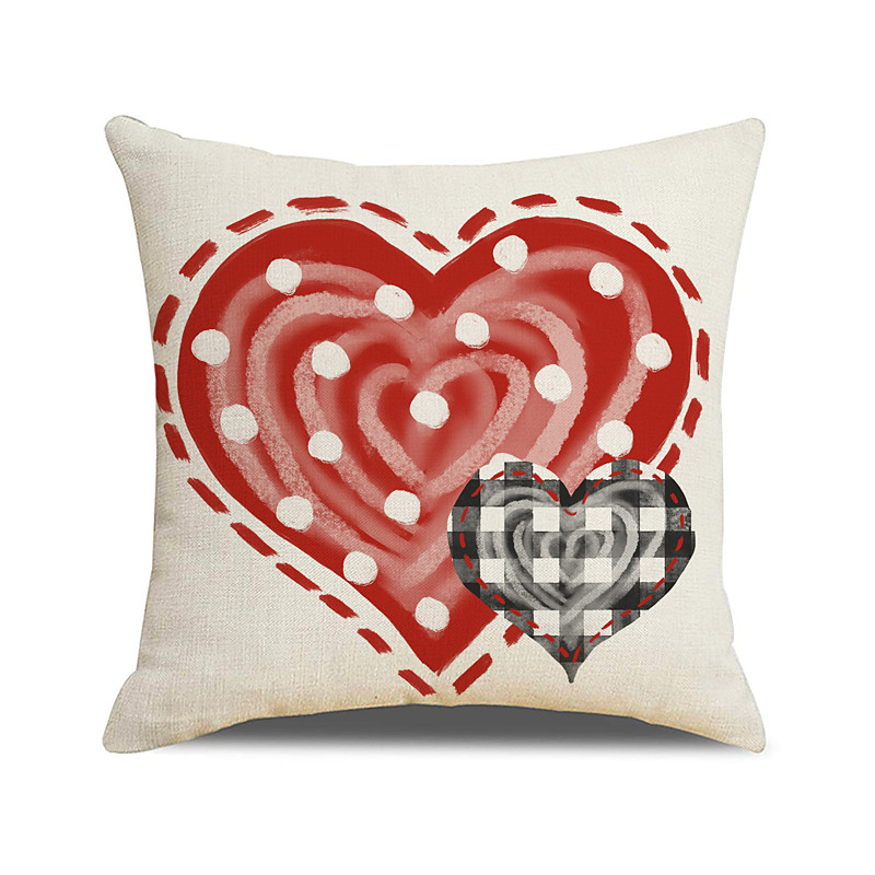 Valentine's Day Heart Pillow Cover, Linen Printed Decorative Cushion, Bedroom Headboard Pillow, Festive Decor Throw Pillow for Bed, Sofa, Living Room