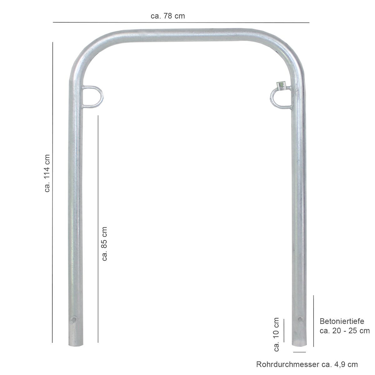 Baumarktplus 2 x Fahrradanlehnbügel 114 x 78 cm Stahl feuerverzinkt Ø 49mm grau Einbetonieren Fahrradständer Parker Typ U
