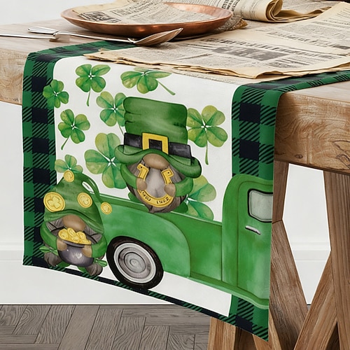 Tischläufer zum St. Patrick's Day, Kleeblatt Tischdecke mit Koboldmuster, grüner Stoff, hitzebeständig, für die Heimdekoration, Dekoration zum St. Patrick's Day.
