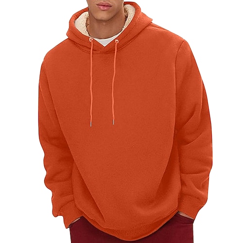 Per uomo Felpa con cappuccio in pile Felpa con cappuccio in pile Sherpa Aalbicocca Nero Giallo Vino Blu marino Con Cappuccio Semplice Coulisse Casuale Quotidiano Uscire Poliestere Streetwear Casual