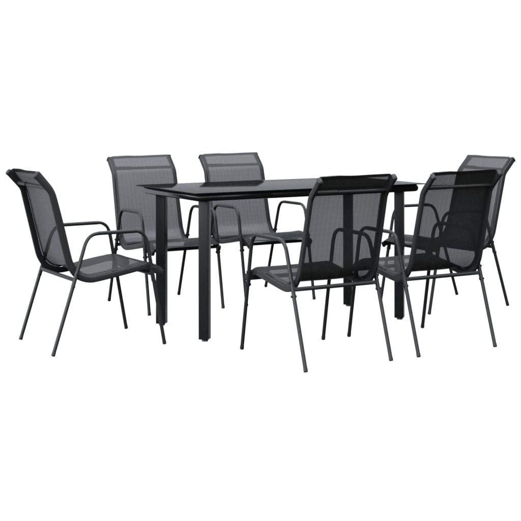 vidaXL 7-tlg. Garten-Essgruppe Schwarz Stahl und Textilene