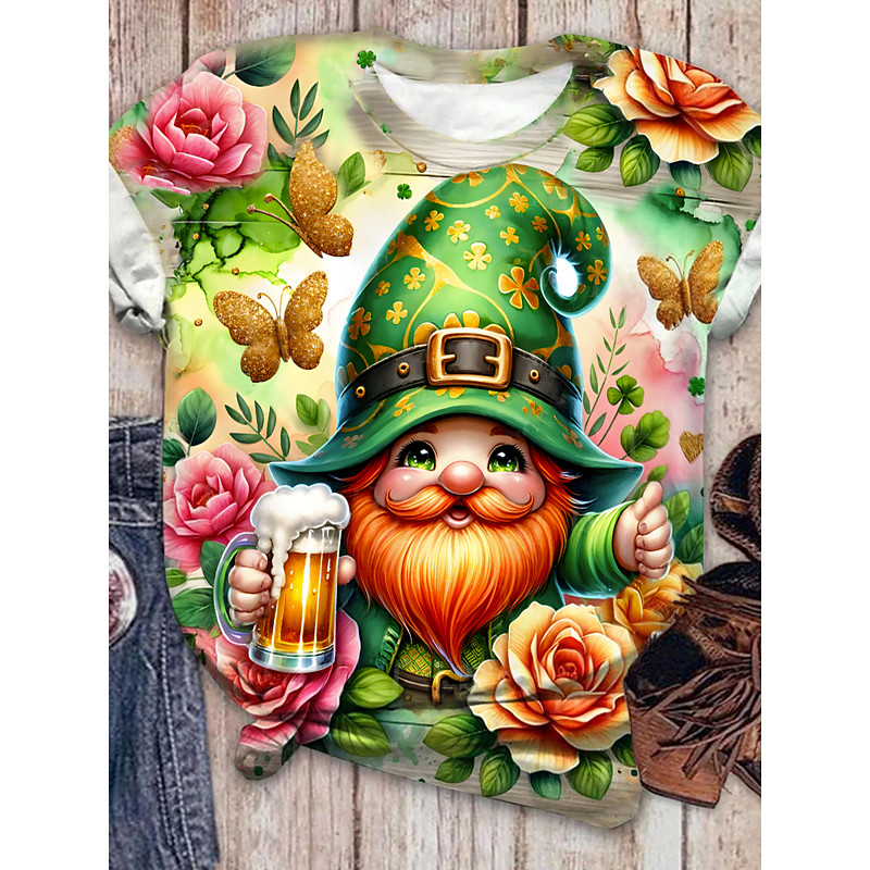 St. Patrick's Day Women's T Shirt Casual Short Sleeve Round Neck Regular Tops Daily Print Khaki Summer