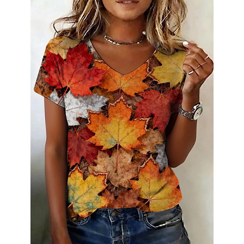Halloween Women's T Shirt Graphic Stylish Casual Short Sleeve V Neck Regular Tops Daily Print Orange Summer Fall