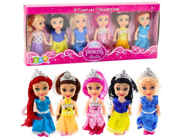 Lean Toys Mini princesių lėlių rinkinys su pasakų suknelėmis, 6 vnt.