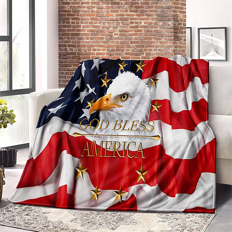 Independence Day Fleece Throw Blanket for Couch Gift Eagle American Flag Classic 3D Sofa Bed Decorative Warm Blanket Home Decor