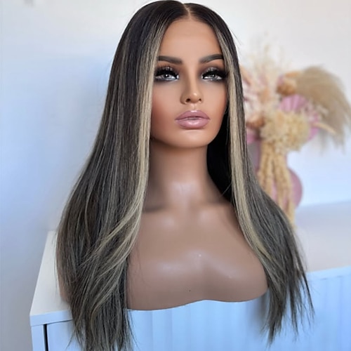 brasilianisches unbehandeltes Remy-Menschenhaar, 5 x 5 Verschlussperücken, 13 x 4 Lace-Front-Perücke, Mittelteil, gewellte aschblonde Strähnchenperücke mit Babyhaar, klebefrei, vorgezupft, für Frauen