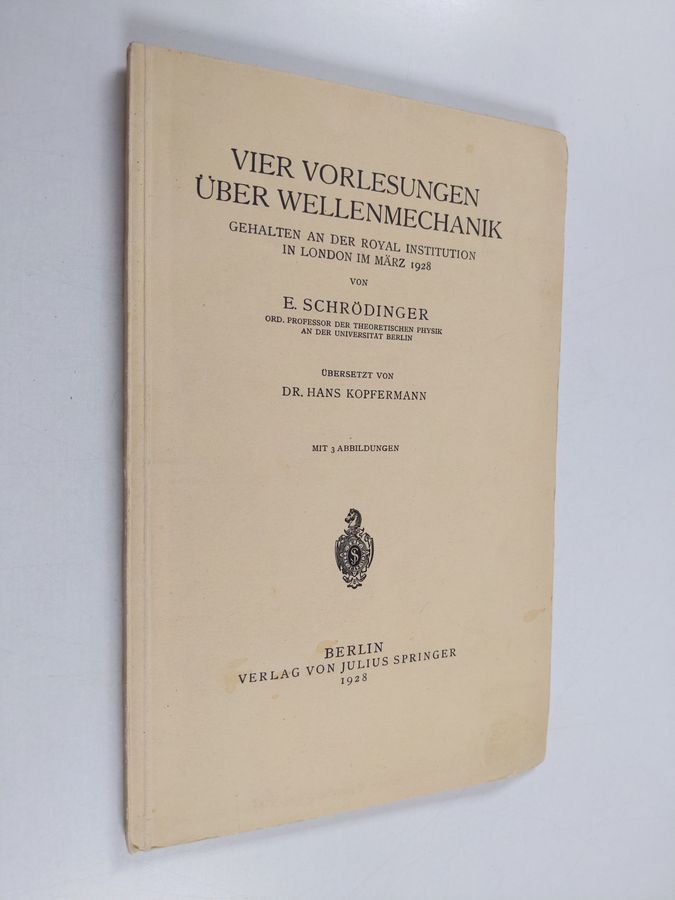 E. Schrödinger : Vier Vorlesungen Über Wellenmechanik, Gehalten an der Royal Institution in London im März 1928