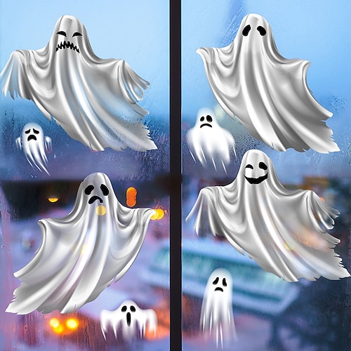 adesivo da parete per finestre di Halloween, adesivi per vetri a forma di fantasma bianco, adesivi statici rimovibili per decorazioni di porte in vetro di armadietti, decorazioni per la casa per feste
