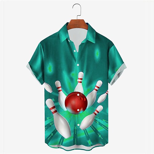 Per uomo Palla da bowling Camicia Camicia con bottoni Manica corta Originale Informale Morbido Esterno Giornaliero Per eventi Estate Primavera Collo ripiegabile Stampa Bottone giù Bianco Verde Nero