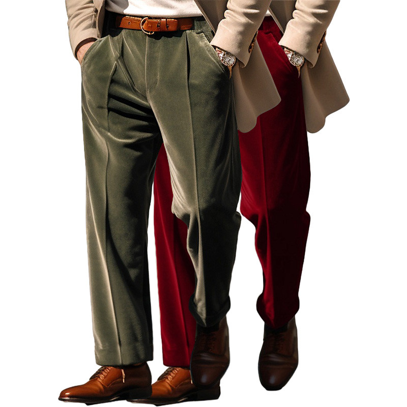 Men's Trousers Dress Pants Baggy Pants Velvet Pants Prom Pants Front Pocket Straight Leg Multi-pack Plain Comfort Full Length Outdoor Business Daily Fashion Chic Modern BlueKhaki BrownBlue