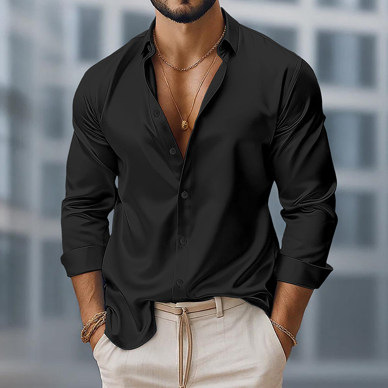 Men's Shirt Silk Like Satin Shirt Dress Shirt Casual Shirt Prom Shirt Plain Formal Wedding Black White Red Royal Blue Long Sleeve Lapel Spring Fall All Seasons Clothing Apparel Plain