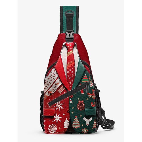 borsa a tracolla natalizia da uomo - poliestere, design multi-fantasia con motivi da smoking e festivi, perfetta per occasioni informali e festive