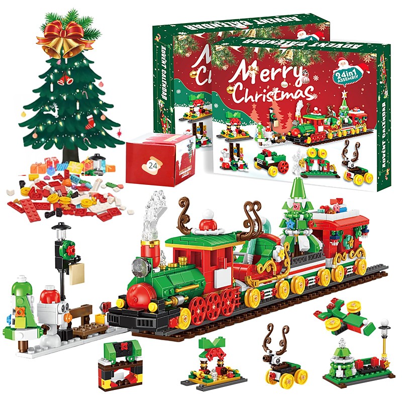 Christmas Building Blocks Advent Calendar Gift Box, 24 Days Countdown DIY Blind Box with Christmas Tree Blocks, Holiday Educational Toys for Kids Boys Girls
