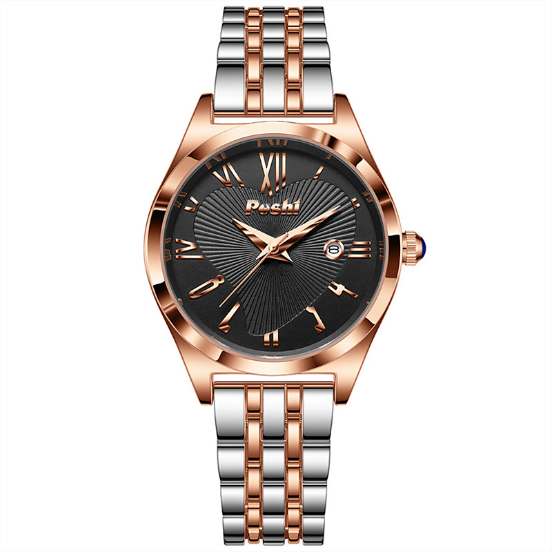 The New Deblve Brand Women'S Steel Band Watch With Ipx7 Water Resistance Calendar Luminous Day Display Quartz Watch Is A Fashionable Casual And Versatile Ladies' Wristwatch