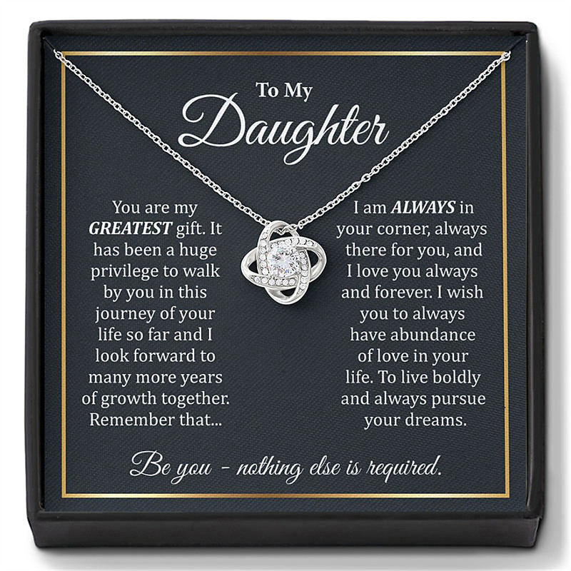 To My Daughter Necklace, Christmas Gift for Girls with Message Card Box, Birthday Jewelry Present, Graduation Keepsake, Valentines Day Gift from Mom or Dad