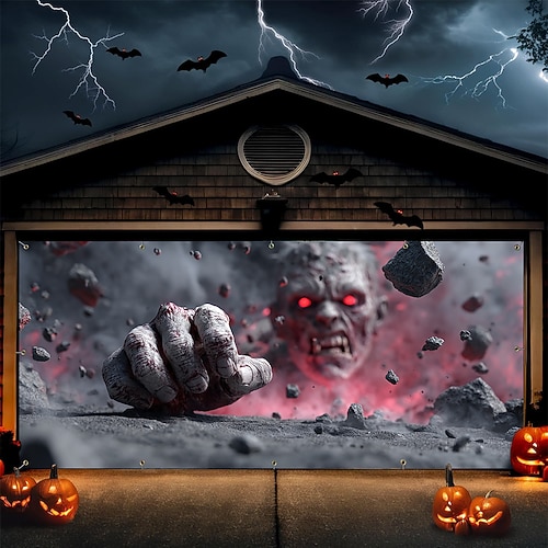 Halloween Copertura per porta del garage Grande appeso Zombi 3D Gotico punk oscuro Da serata All'aperto Sfondi di ripresa Yarda Casa infestata Arredamento per la casa