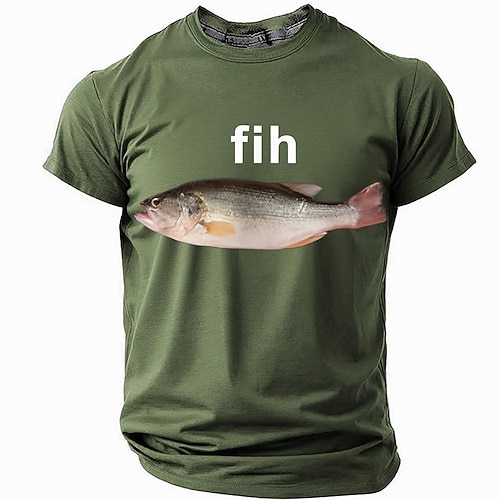 T-Shirt Grafica fih Pesce Divertente da Uomo Gioco di Parole a Maniche Corte