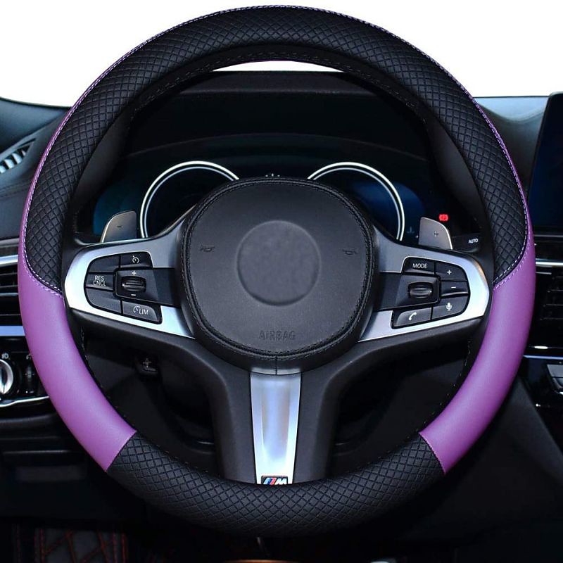 Car Steering Wheel Cover Leather Universal 15 Inch Fit Anti-Slip amp; Odor-Free