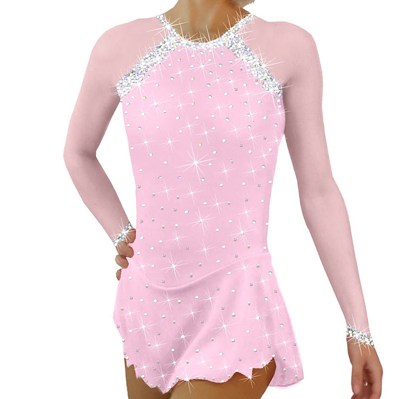 Figure Skating Dress Women's Girls' Ice Skating Dress Pink Dark Navy Open Back Asymmetric Hem Mesh High Elasticity Training Competition Skating Wear Classic Crystal / Rhinestone Long Sleeve Ice