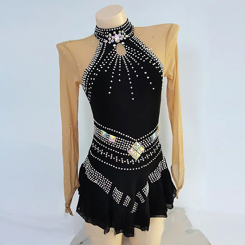 Figure Skating Dress Women's Girls' Ice Skating Dress Black High Elasticity Training Competition Skating Wear Classic Crystal / Rhinestone Long Sleeve Ice Skating Figure Skating