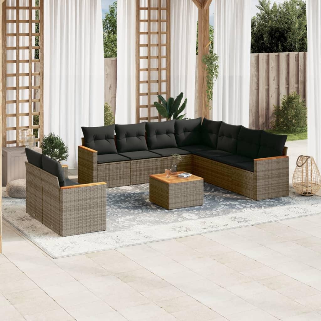 Sofasæt til haven 10 dele med hynder polyrattan grå