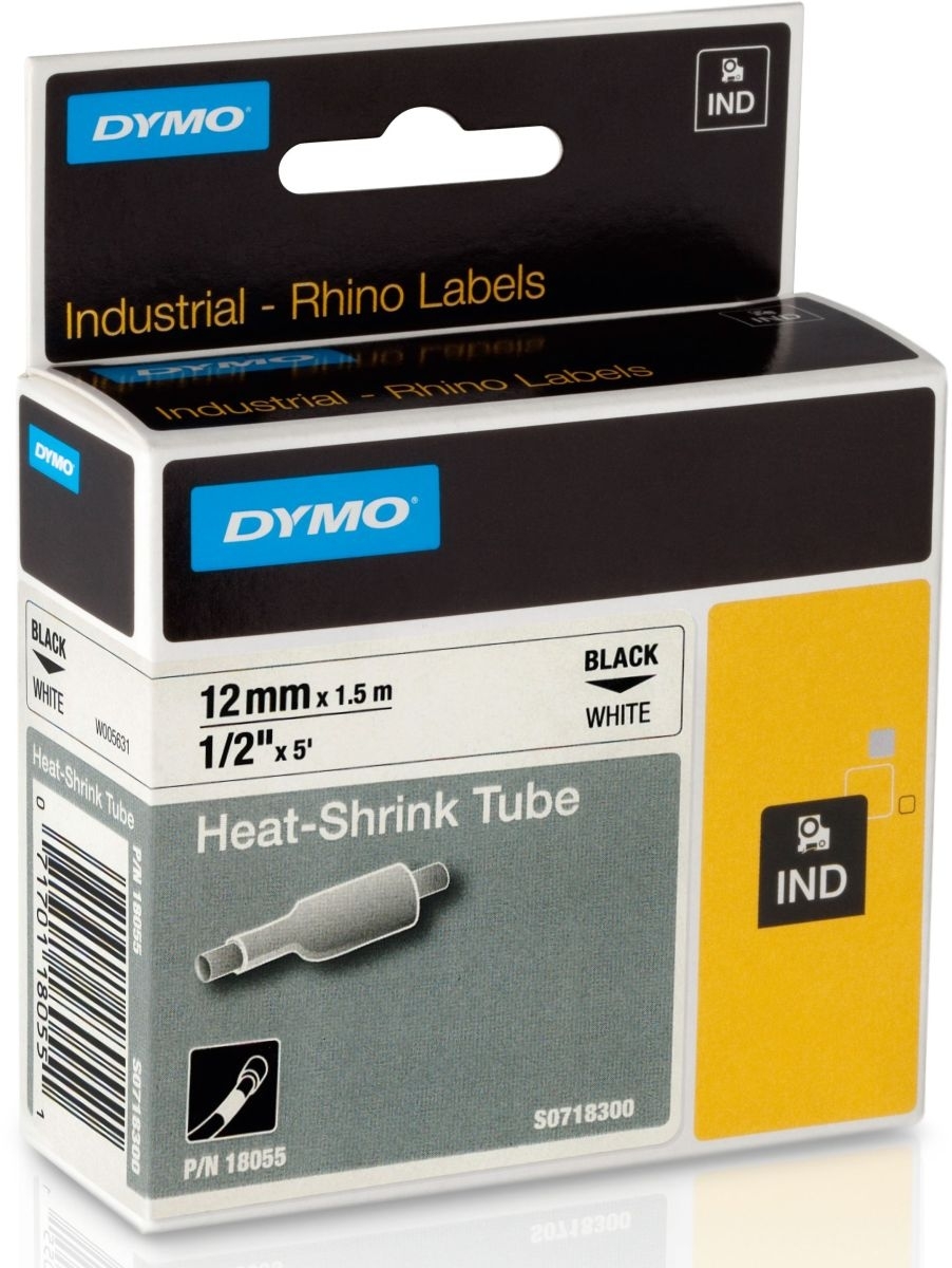 DYMO Schriftbandkassette Heißschrumpfschlauch Kunststoff 1,5mx12mm schwarz/weiß Packung mit 5 Stück