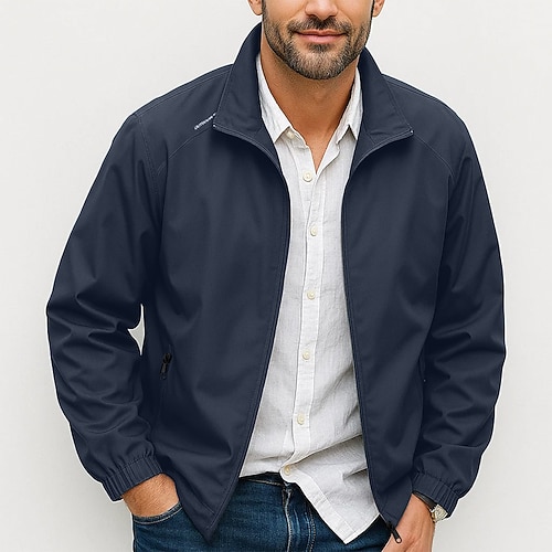 Herren Leichte Jacke Freizeitjacke Urlaub Täglich Warm Tasche Herbst Winter Einfach Mode Klassisch Stehkragen Regulär Schwarz Marineblau Blau Braun Khaki Jacken