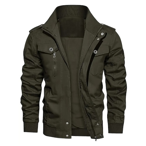 Herren Bomberjacke Jacke Sport Jacke Outdoor Sport Windundurchlässig Warm Winter Einfarbig Militär Taktisch Ständer Standard Schwarz Armeegrün Rote Blau Khaki Jacken