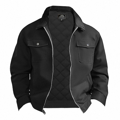 Herren Jacke Freizeitjacke Outdoor Urlaub Warm Reißverschluss Tasche Herbst Winter Ganzjahres Einfach Vintage Mode Stehkragen Kurz Schwarz Marineblau Grün Khaki Grau Jacken