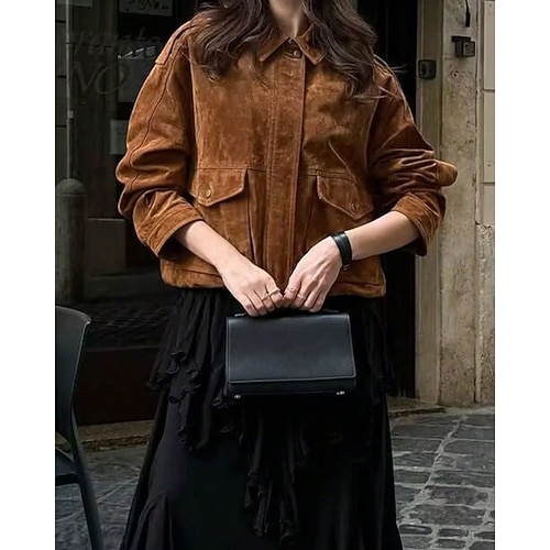 Damen Wintermantel Jacke Freizeitjacke Warm Bequem Tasche Knöpfe Lässig Einfach Urlaub Alltagskleidung Ausgehen Wochenende Regulär Umlegekragen Lässiger Schnitt Langarm Oberbekleidung Braun Khaki