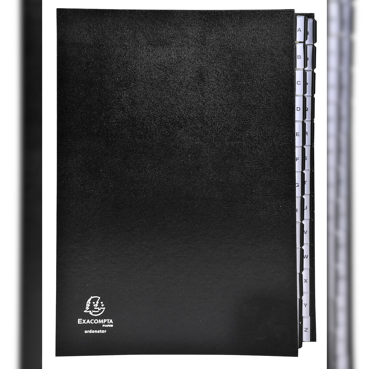 Exacompta 621265E Ordnungsmappe mit festem Deckel und dehnbarem Faltenrücken, 26 Fächer mit Kunststofftaben A-Z, Ordonator, für Format A4 - Schwarz