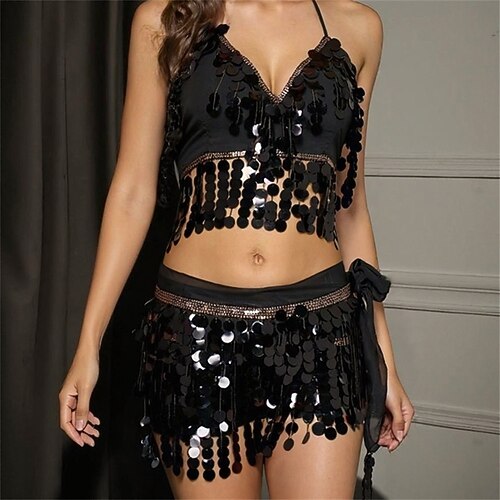 Carnevale 2026 Abbigliamento da danza Samba di Rio Gonna da danza del ventre con top corto in paillettes Set di gonne frangiate per danza rave Costume da festa Carnevale in Brasile
