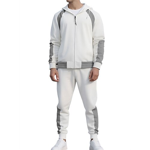 Per uomo Tuta da Ginnastica Set di abiti Set di felpe con cappuccio Felpa con Cappuccio All'aperto Quotidiano Sportivo Coulisse Con zip Tasca Blocco di colori Rosso bordeaux Nero Bianco Poliestere