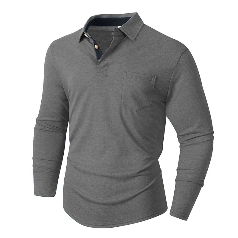 Men's Golf Shirt Golf Polos Shirts Work Casual Lapel Long Sleeve Basic Modern Plain Pocket Buttons Spring Fall Regular Fit Black White Navy Blue Dark Green Khaki Army Green Golf Shirt
