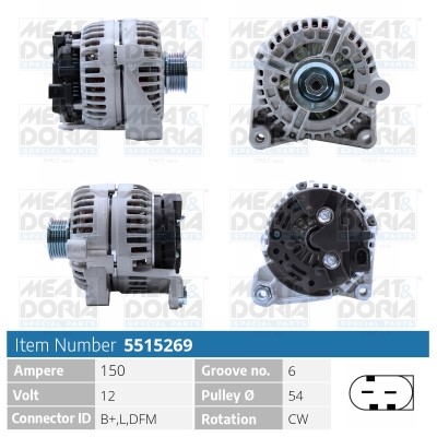 Laturi 12V 150A Meat & doria 5515269 - bmw, land rover - OE 12 31 7 797 660, 12 31 7 797 661, YLE000070