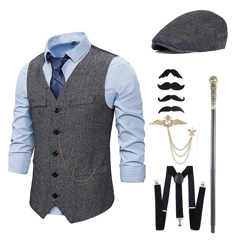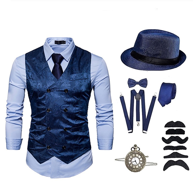 Retro Vintage Roaring 20s 1920s Outfits Waistcoat Accesories Set Gentleman Gangster Fancy Dress Men's Halloween Carnival New Year Carnival Party / Evening Masquerade Adults' Cravat Vest Hat All