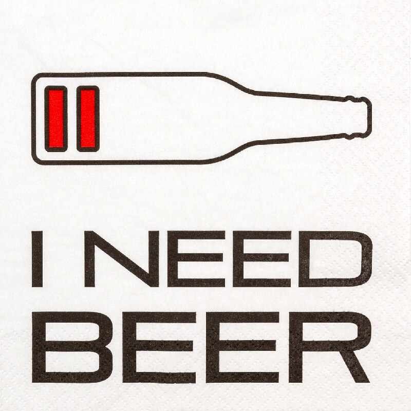 Home Fashion, I need Beer, Lunch-Servietten aufgefaltetes Maß 33 cm x 33 cm, im Viertelfalz, 20 Stück pro Pack