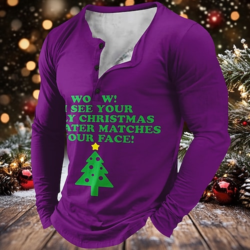 natale uomo divertente natale henley t shirt albero albero lettera alberi lettere sport moda quotidiano stampa 3d henley manica lunga strada casual quotidiano nero rosso viola manica lunga henley