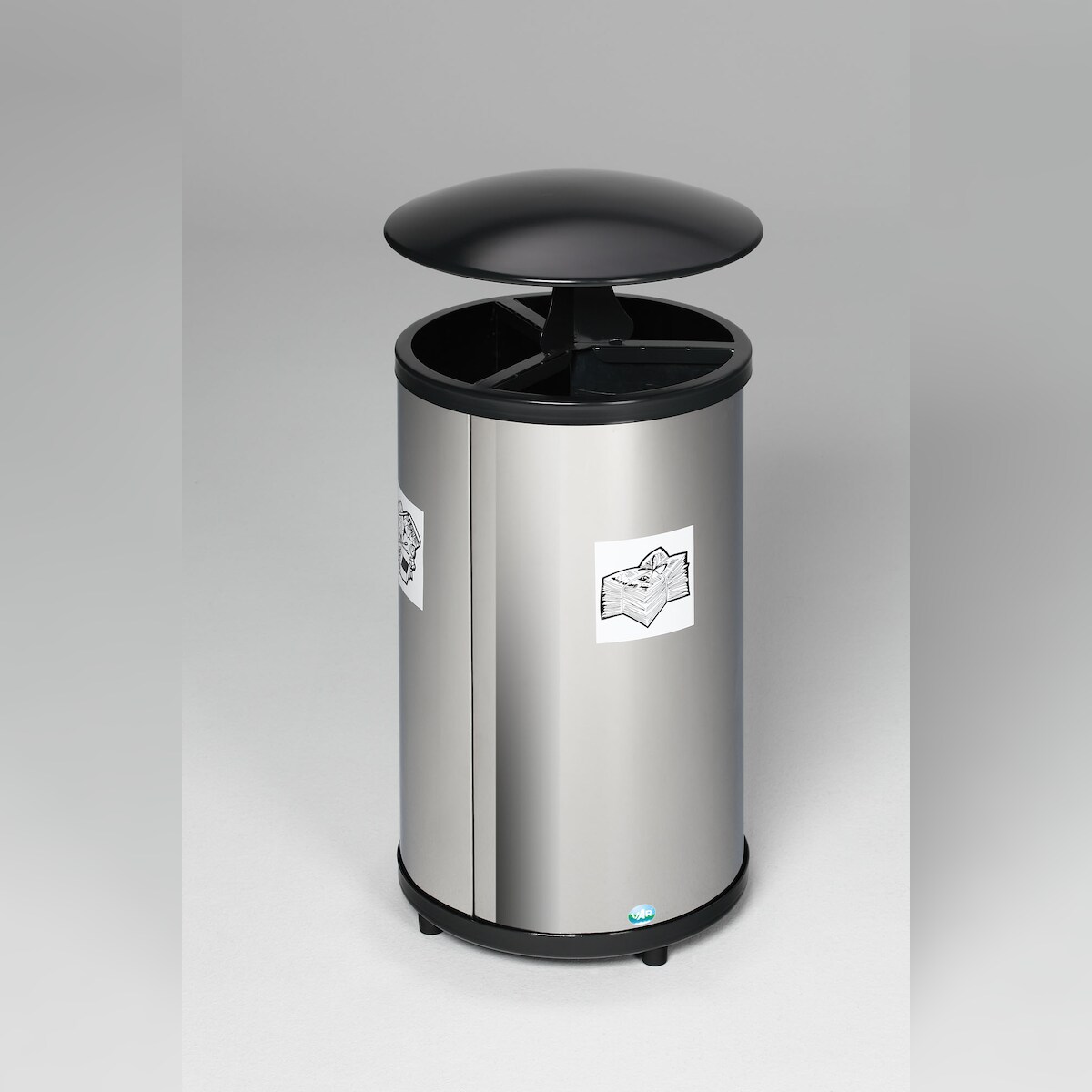 PROREGAL Robuste Wertstoffsammelstation mit Dach | 30 Liter je Behälter, HxBxT 89x42x42cm | Edelstahl | Silber | Mülleimer Abfalleimer Müllkorb