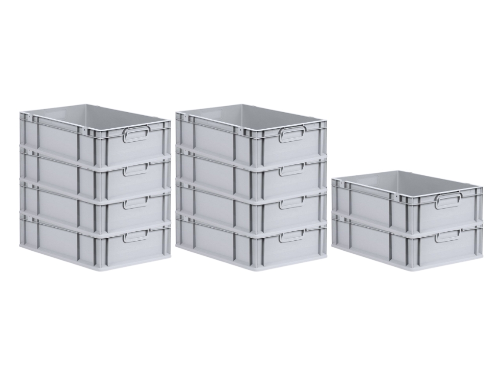 PROREGAL 10x Eurobox NextGen Grip | HxBxT 17x40x60cm | 34 Liter | Griffe geschlossen | Glatter Boden | Eurobehälter